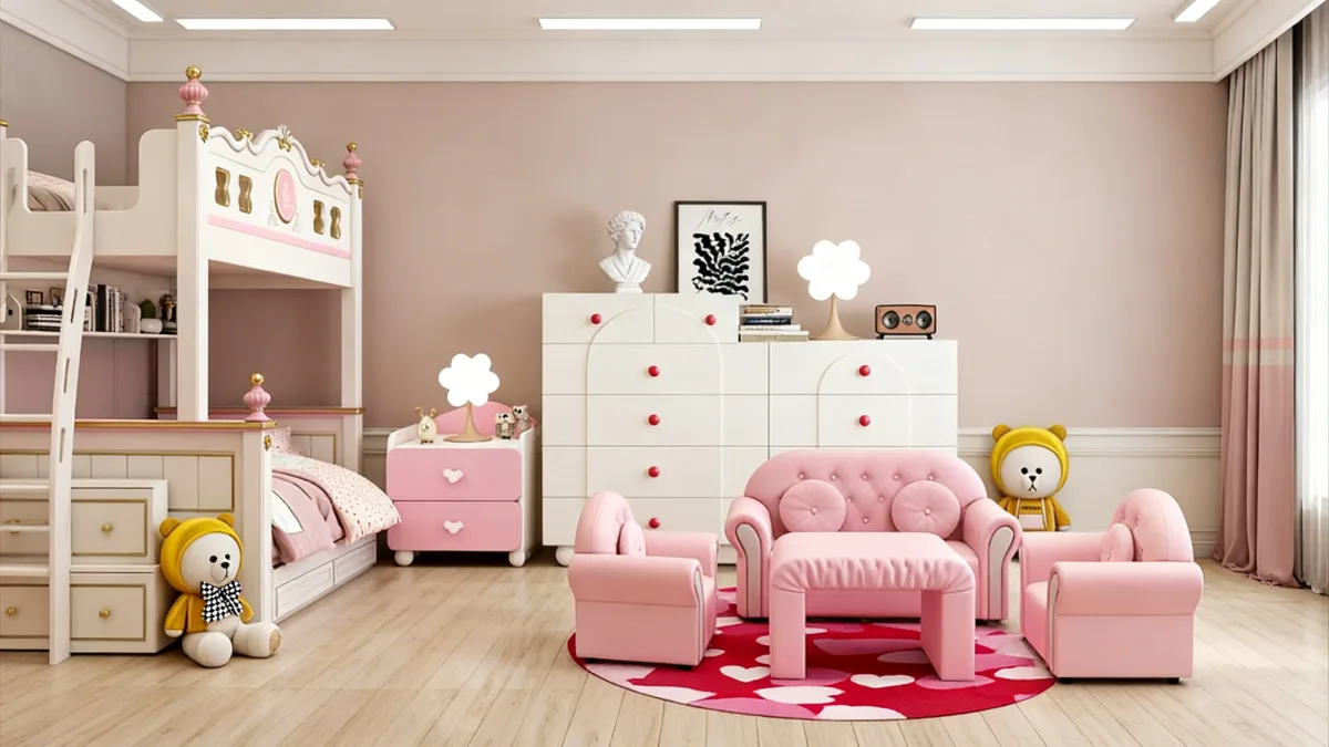 اكتشفوا تصاميمنا الجديدة — طقم كرسي الاميرات، كومدينو أطفال بتصميم لطيف، خزانة مودرن، وسرير القلعة للأطفال بطابقين. كل ما تحتاجونه لتحويل غرفة أطفالكم إلى مكان مليء بالإبداع والمرح.