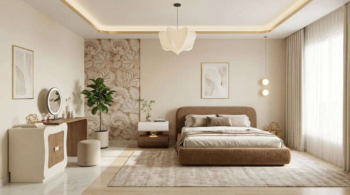 غرفة نوم أنيقة بألوان ناعمة